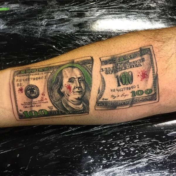 多款黑灰素描点刺技巧创意独特的寓意满满货币纹身图案