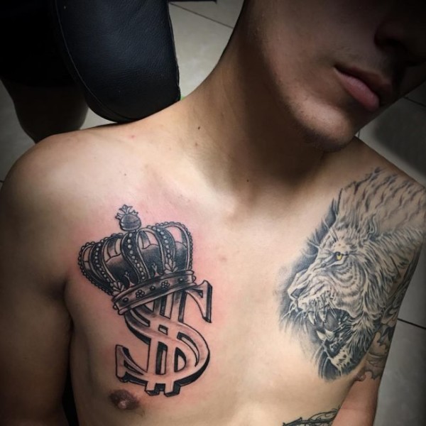 多款黑灰素描点刺技巧创意独特的寓意满满货币纹身图案