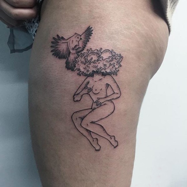 极简线条纹身 多款极简线条纹身素描欧美抽象纹身图片
