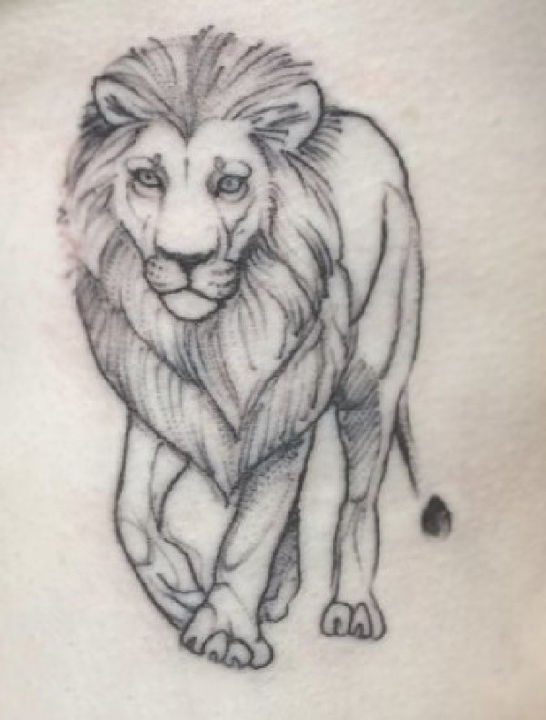 霸气的黑灰点刺简单抽象线条小动物狮子纹身图片