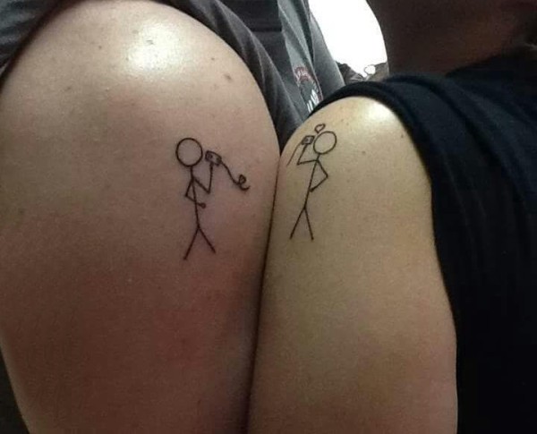 情侣肩部黑色几何简单线条卡通火柴人纹身图片
