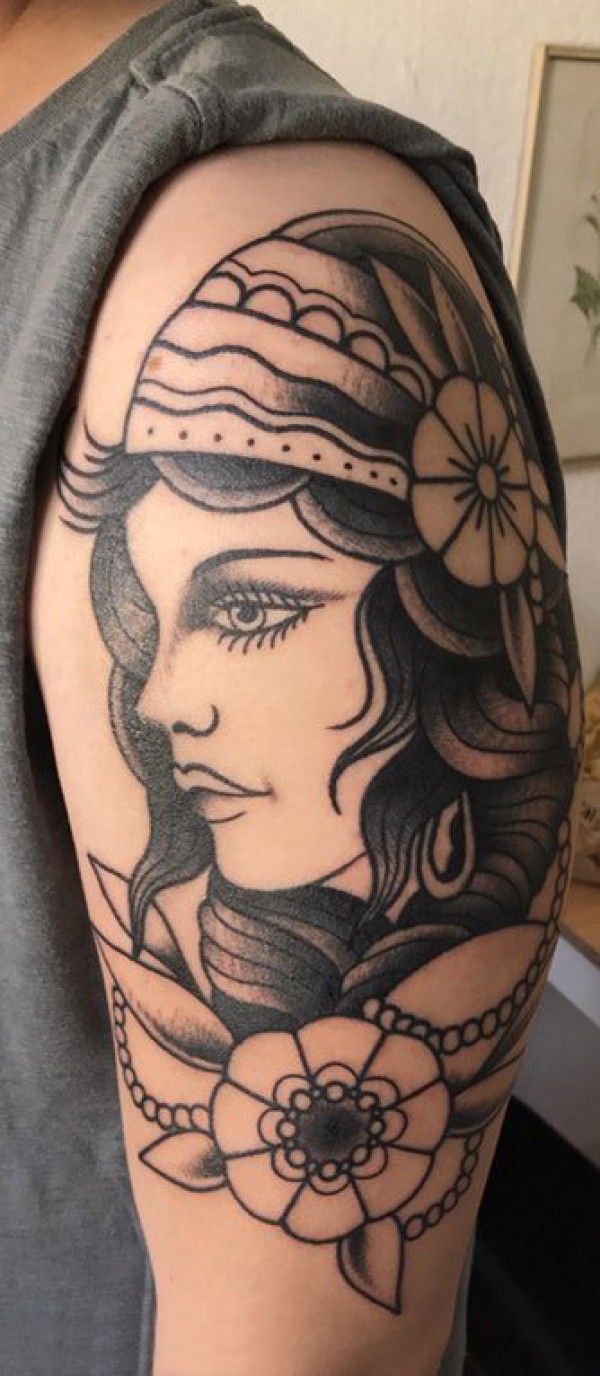 女性肩部肖像刺青_肖像纹身图案大全_纹身图吧