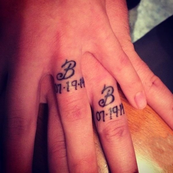 经久不变的黑色简单个性线条情侣戒指纹身图案