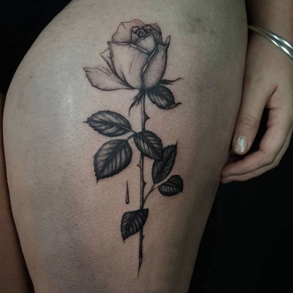 香气扑鼻的黑色点刺简单线条小清新植物玫瑰纹身图案