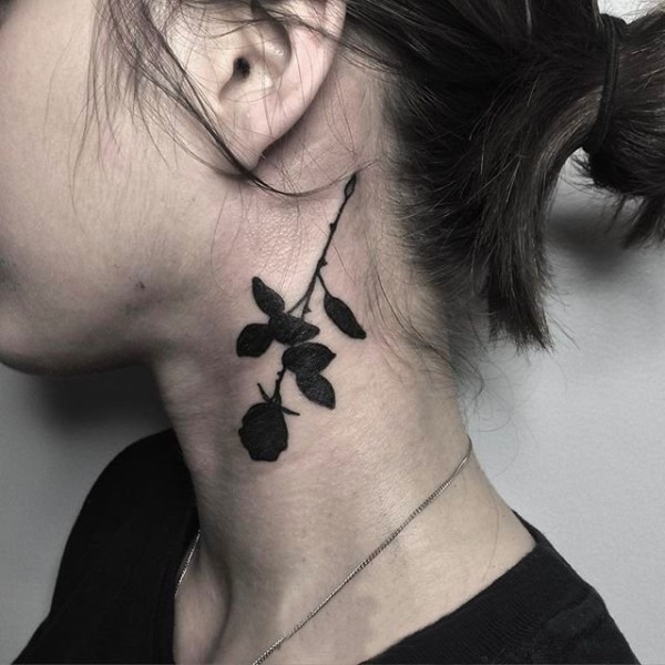 香气扑鼻的黑色点刺简单线条小清新植物玫瑰纹身图案
