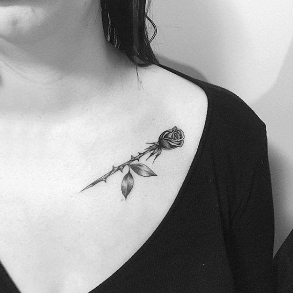 香气扑鼻的黑色点刺简单线条小清新植物玫瑰纹身图案