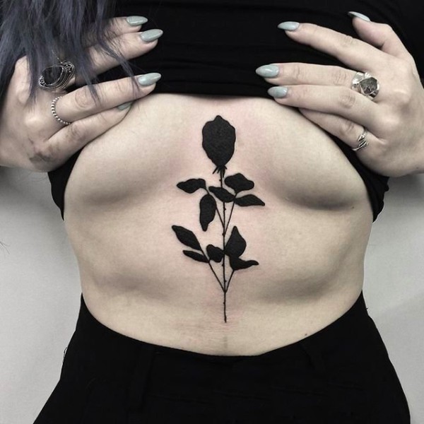 香气扑鼻的黑色点刺简单线条小清新植物玫瑰纹身图案