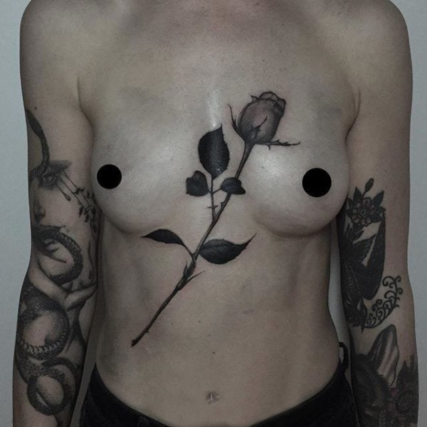 香气扑鼻的黑色点刺简单线条小清新植物玫瑰纹身图案