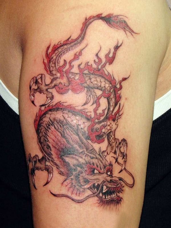 龙纹身手稿_一组老传统黑灰龙手稿纹身图案