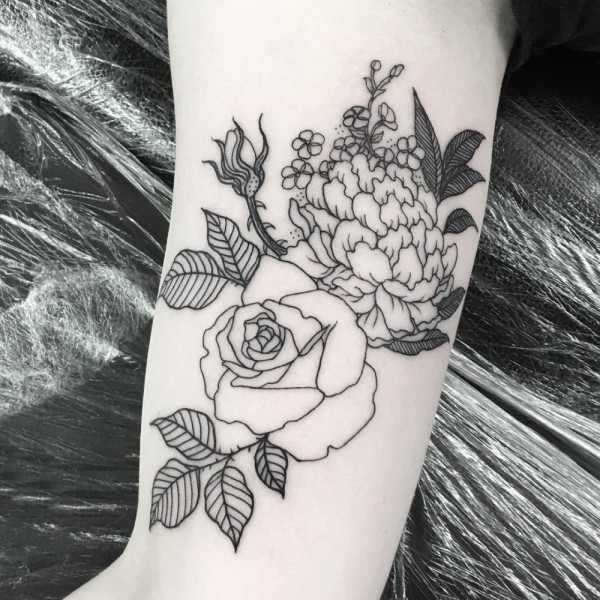 女生手臂上黑灰素描文艺精美别致花朵纹身图片