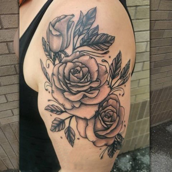 男生手臂上黑灰素描点刺技巧创意文艺唯美玫瑰纹身图片