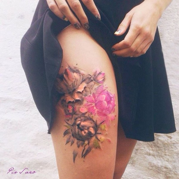 清新花朵腿部纹身图案图片_植物纹身图案大全_纹身图吧