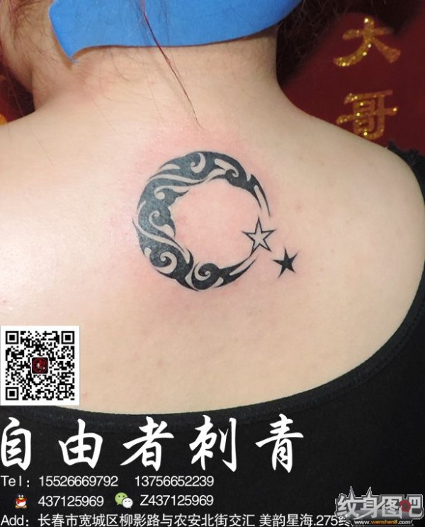 后颈部纹身小图--9张女生脖子后颈处的简约纹身图案