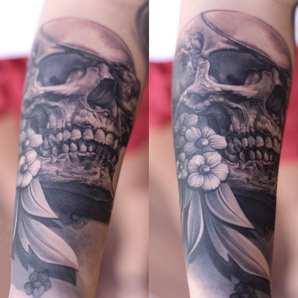 个性手臂悲伤的骷髅纹身图案图案图片_骷髅纹身图案大全_纹身图吧