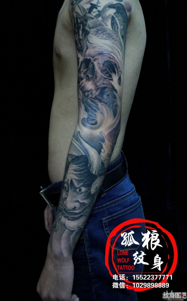 宝坻纹身 般若骷髅花臂纹身 孤狼纹身工作室作品 天津