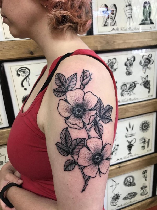 后肩唯美花藤英文图案图片_植物纹身图案大全_纹身图吧