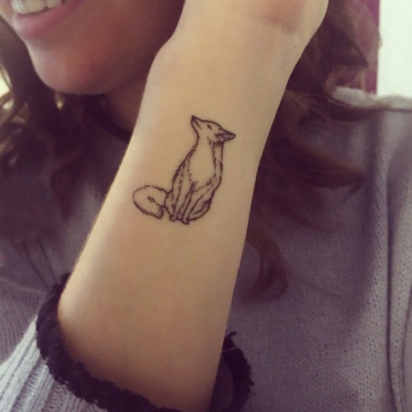 女生手臂上黑色简单线条小动物狐狸纹身图片