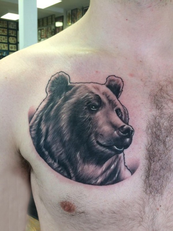 男生胸部黑色点刺简单线条小动物熊纹身图片