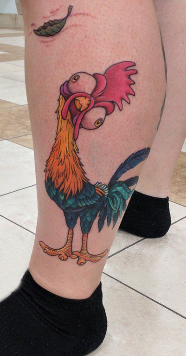 男生小腿上彩绘水彩素描创意有趣公鸡纹身图片
