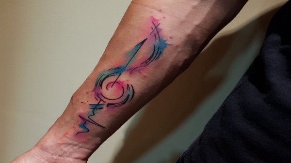 男生手臂上彩绘渐变简单抽象线条抽象线条纹身图片