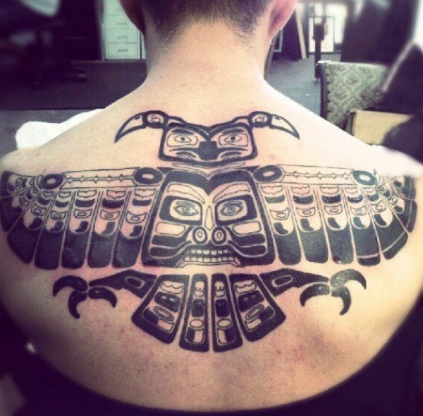 男生背部黑灰素描点刺技巧创意霸气猫头鹰纹身图片