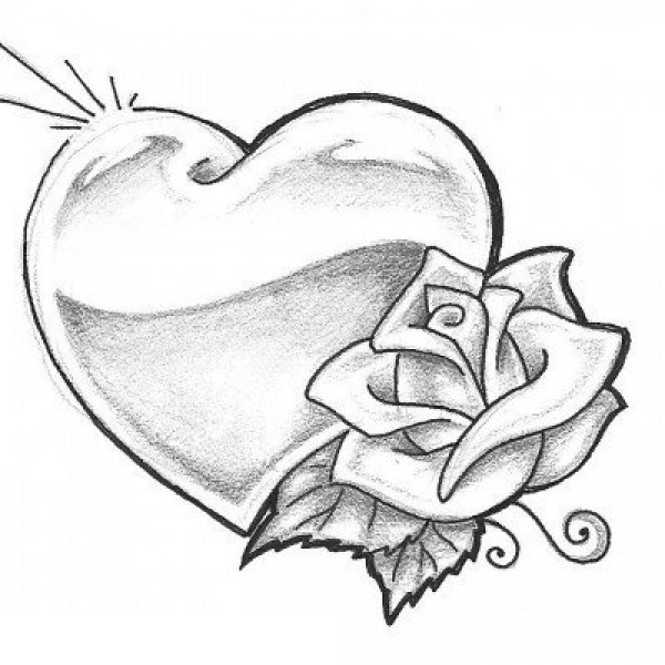 黑灰素描文艺唯美花朵心形纹身手稿