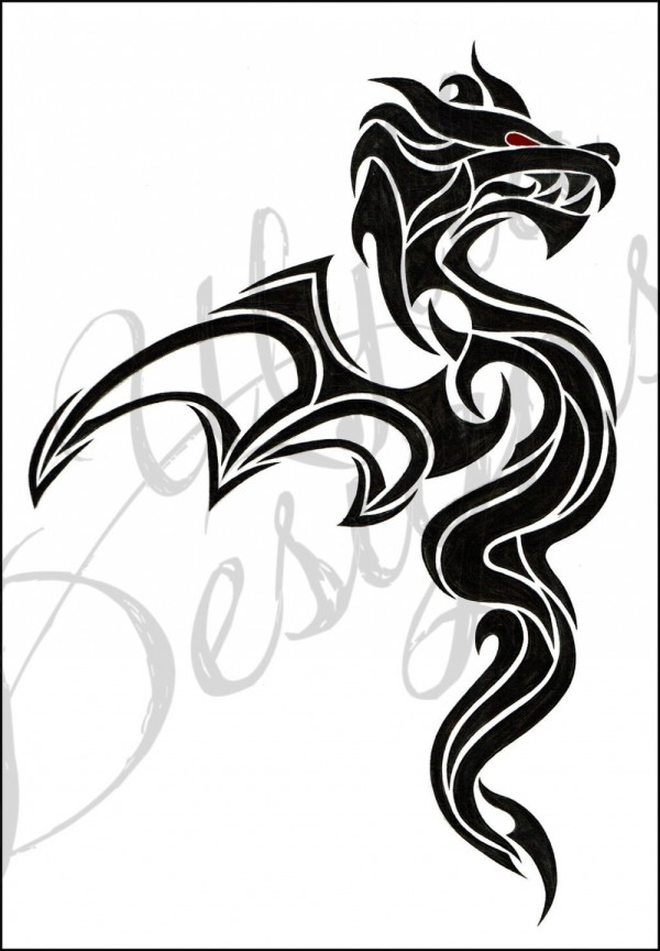 龙纹身手稿_一组老传统黑灰龙手稿纹身图案