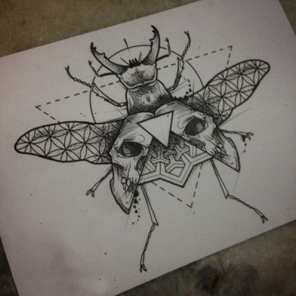 黑灰素描创意精致昆虫小动物纹身手稿