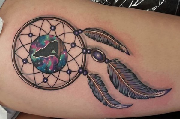 男生手臂上彩绘水彩素描创意文艺3d捕梦网纹身图片