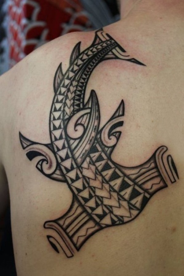 男生背部黑色线条素描创意有趣几何线条鱼图腾纹身图片