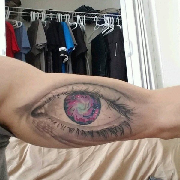 男生手臂上彩绘水彩素描创意文艺精致3d眼睛纹身图片