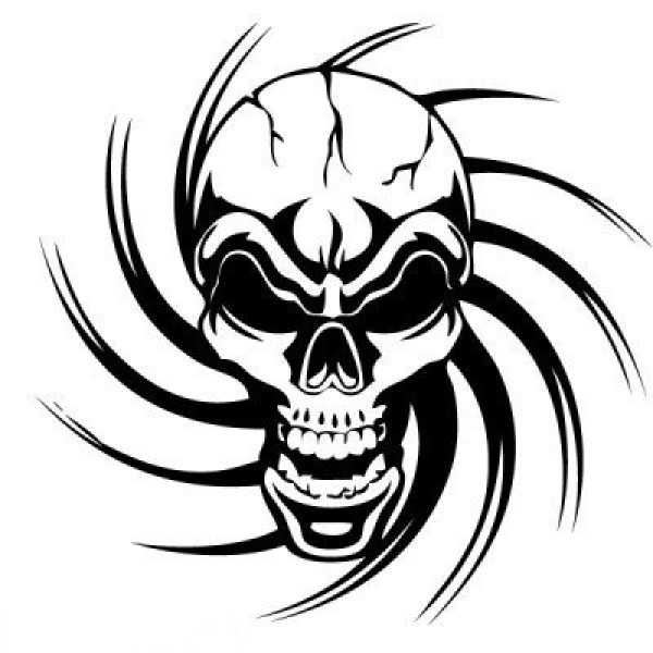 黑色线条素描创意霸气精致骷髅纹身手稿