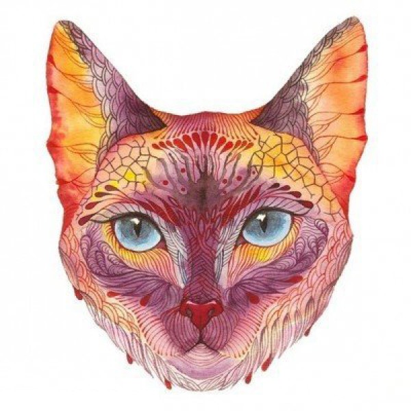 彩绘水彩素描创意俏皮可爱猫咪纹身手稿