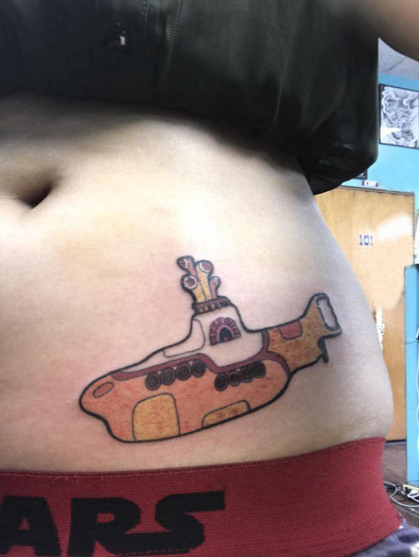 女生腹部彩绘几何简单线条潜艇纹身图片