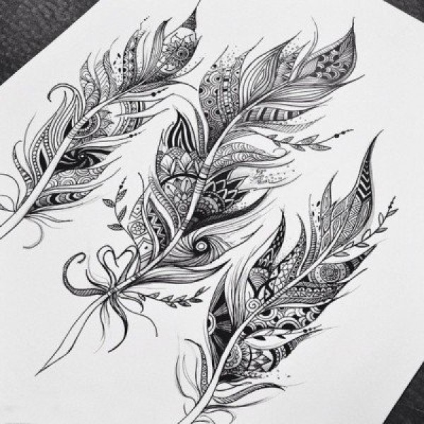 黑灰素描创意唯美花纹羽毛纹身手稿