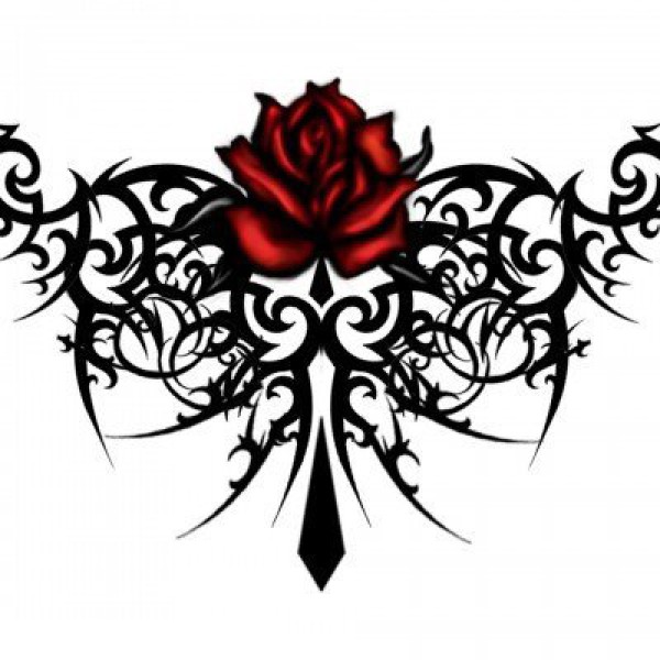红黑撞色创意文艺唯美玫瑰纹身手稿