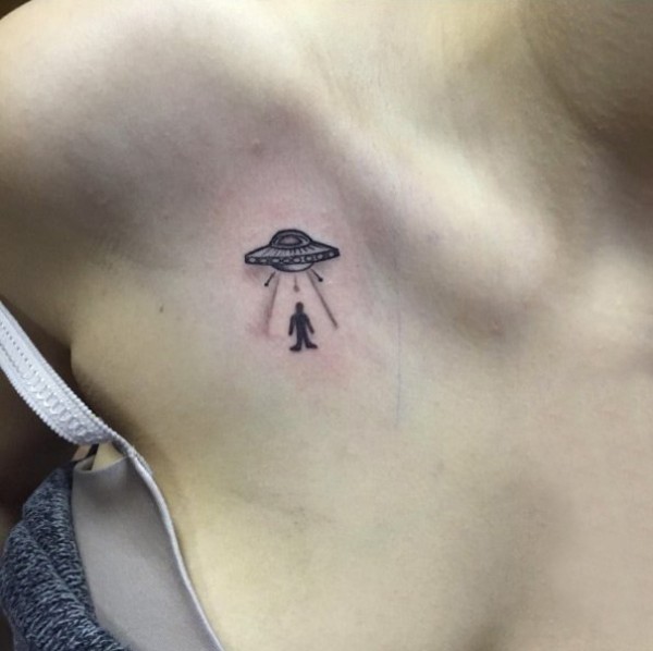 多款黑色线条素描创意有趣宇宙飞碟纹身图案