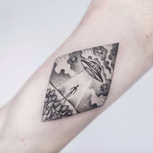 多款黑色线条素描创意有趣宇宙飞碟纹身图案