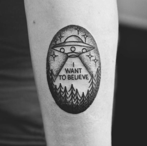 多款黑色线条素描创意有趣宇宙飞碟纹身图案