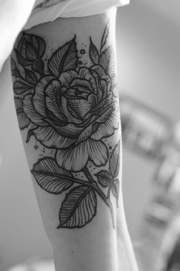 欧美玫瑰纹身 男生手臂上花朵纹身图片