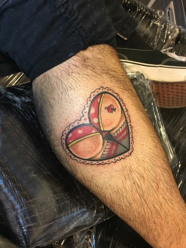 男生小腿上彩绘水彩素描创意有趣搞怪心形纹身图片