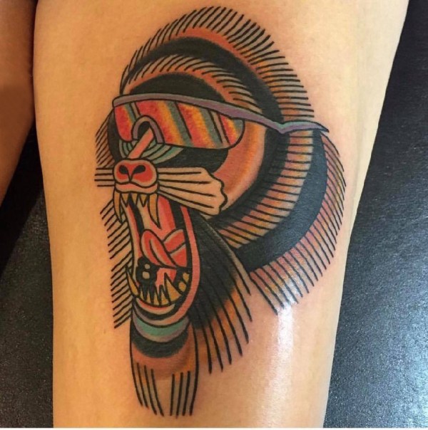 女生大腿上彩绘水彩素描创意霸气抽象狮子头纹身图片