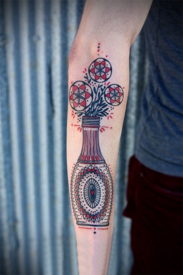 欧美玫瑰纹身 男生手臂上花朵纹身图片