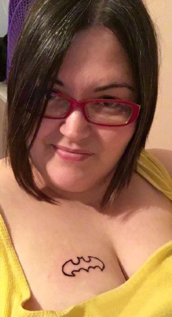 女生胸部黑色简单线条蝙蝠侠符号纹身图片
