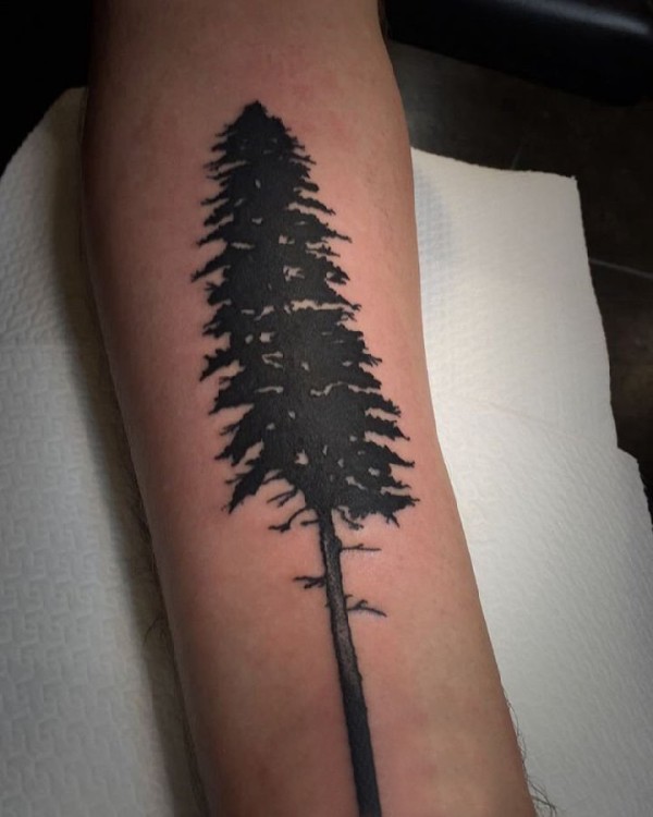 男生手臂上黑色点刺简单抽象线条植物松树纹身图片