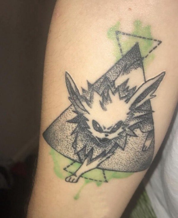 男生手臂上黑灰素描点刺技巧创意有趣卡通纹身图片