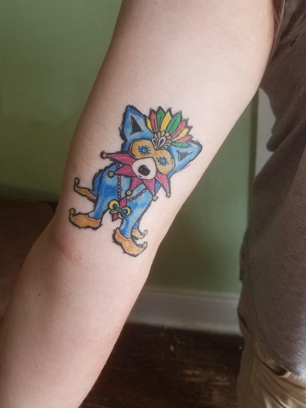 男生手臂上彩绘水彩素描创意可爱卡通纹身图片