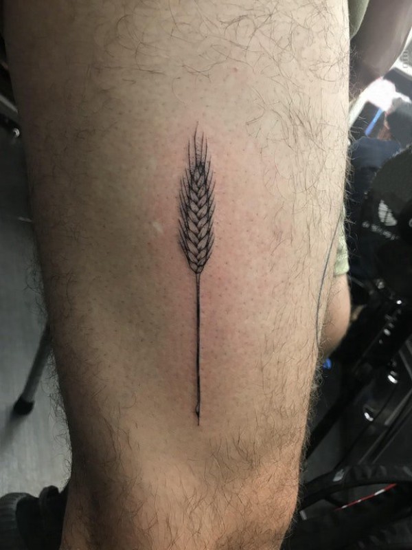 男生大腿上黑色点刺简单线条植物稻穗纹身图片