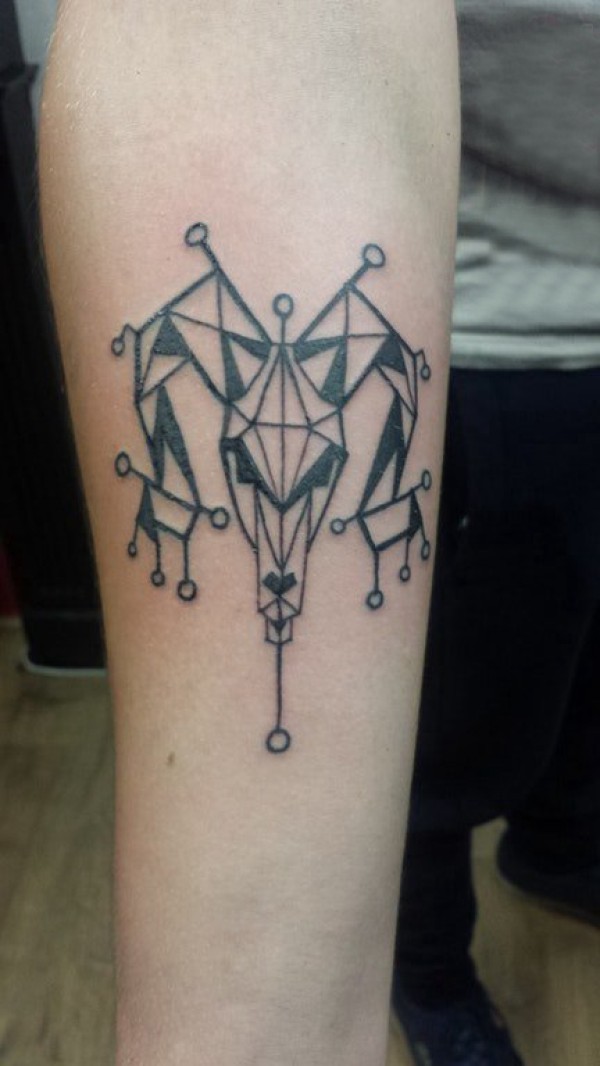 男生手臂上黑色线条素描创意有趣牛头纹身图片