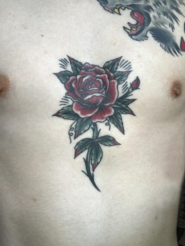 男生胸部彩绘渐变简单抽象线条植物玫瑰花纹身图片